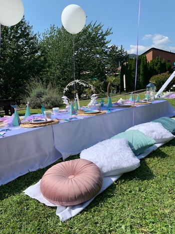penseremo noi a portare tavoli bassi, cuscini morbidi , tovaglie , piatti , bicchieri forchette e allestire il tavolo in stile ..